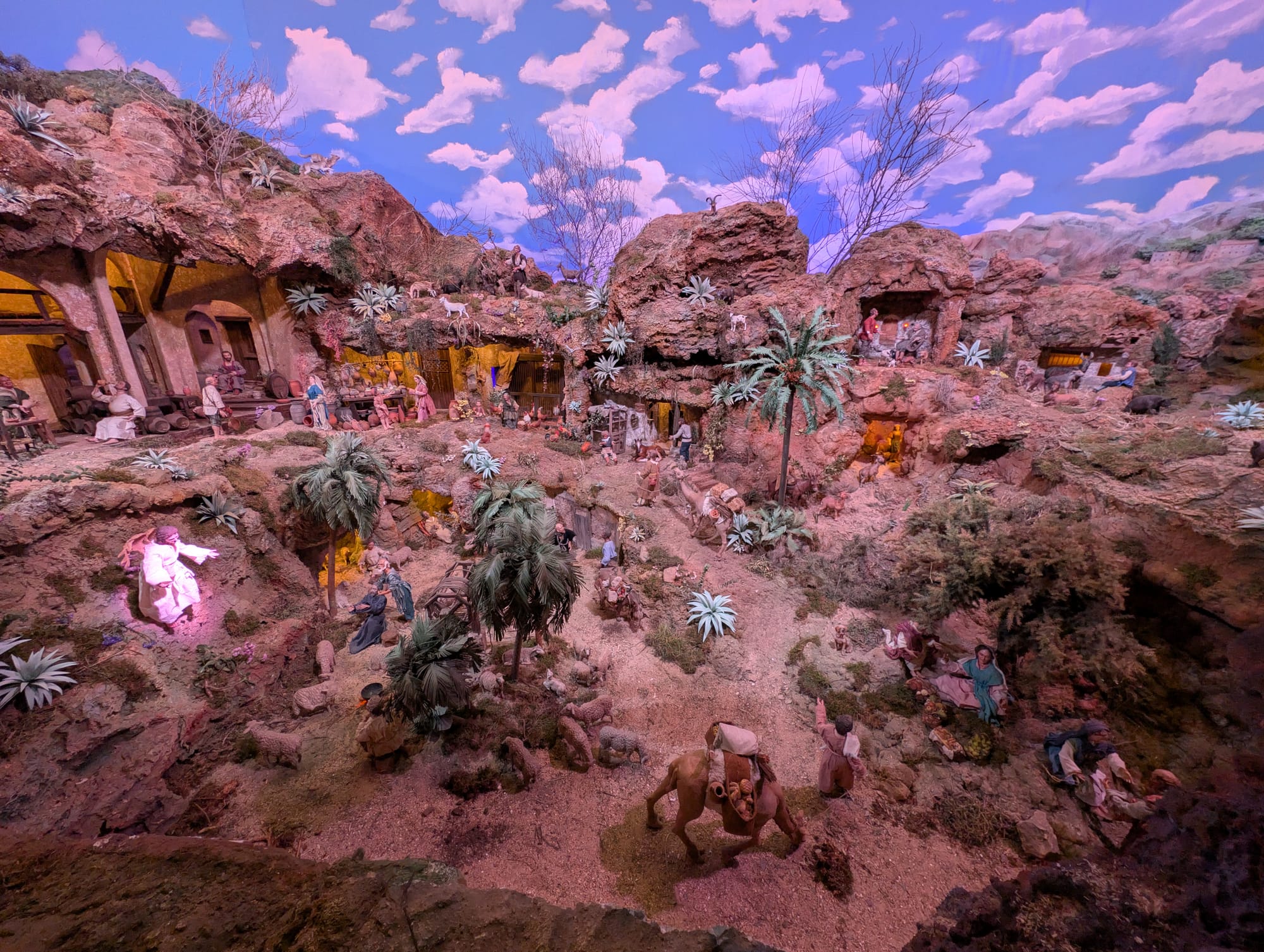 Belén means Bethlehem, but a Spanish Belén is so much more than a tiny stable with a manger. It’s an entire miniature world. Picture sweeping landscapes carved from cork, moss-covered hillsides, hand-painted villagers, flickering campfires, bustling markets, and rivers made from glass or running water. The Holy Family is there but so is the butcher, the baker, the sandal-maker, and the shepherd with his flock.